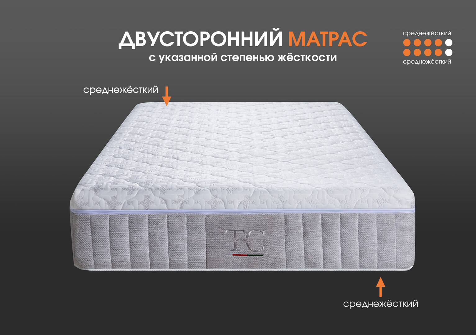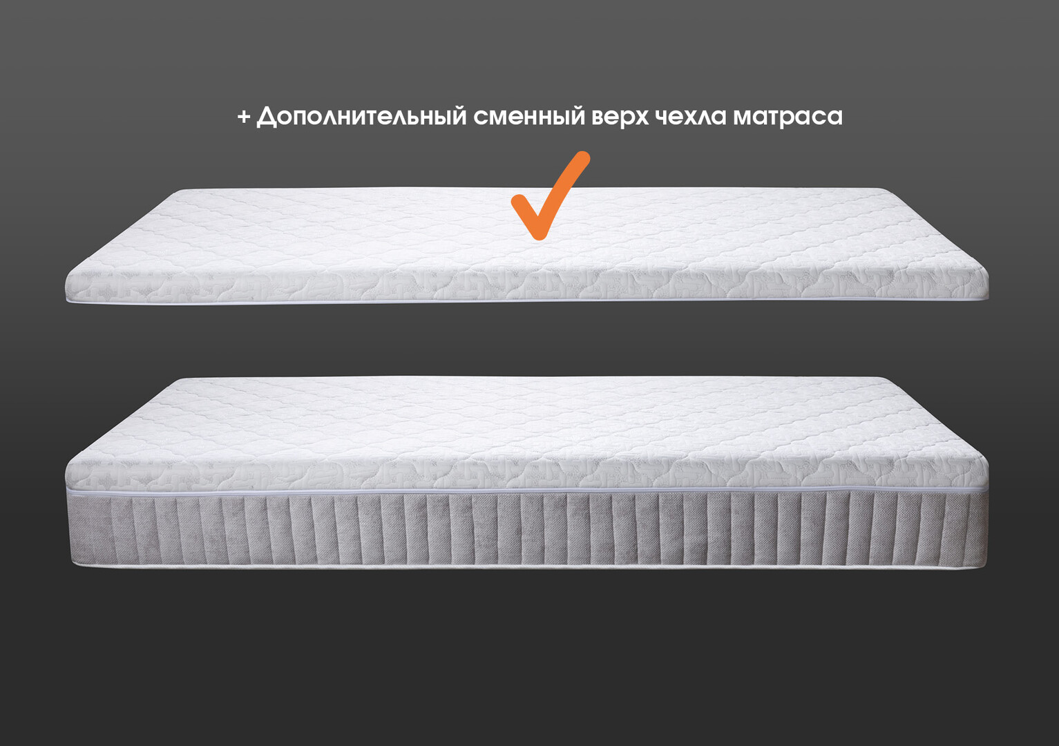 Основной чехол матраса: верх матраса — разъёмный, на молнии, из трикотажной ткани Silver (63 % полиэстер, 37 % вискоза; разрешена стирка). Борт матраса — мебельная ткань шенилл, коллекция Sharme от компании «БЕЛКРАФТ», + дополнительный комплект верха чехла матраса.