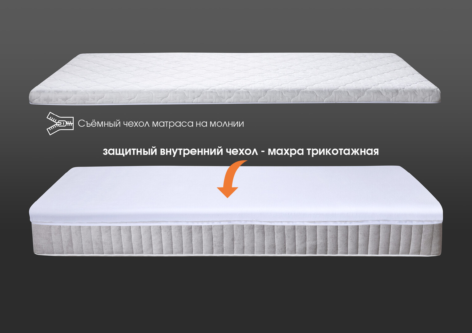 Внутренний чехол матраса из непромокаемого махрового полотна «Мулетон» защищает наполнители от проникновения влаги и увеличивает срок службы изделия.