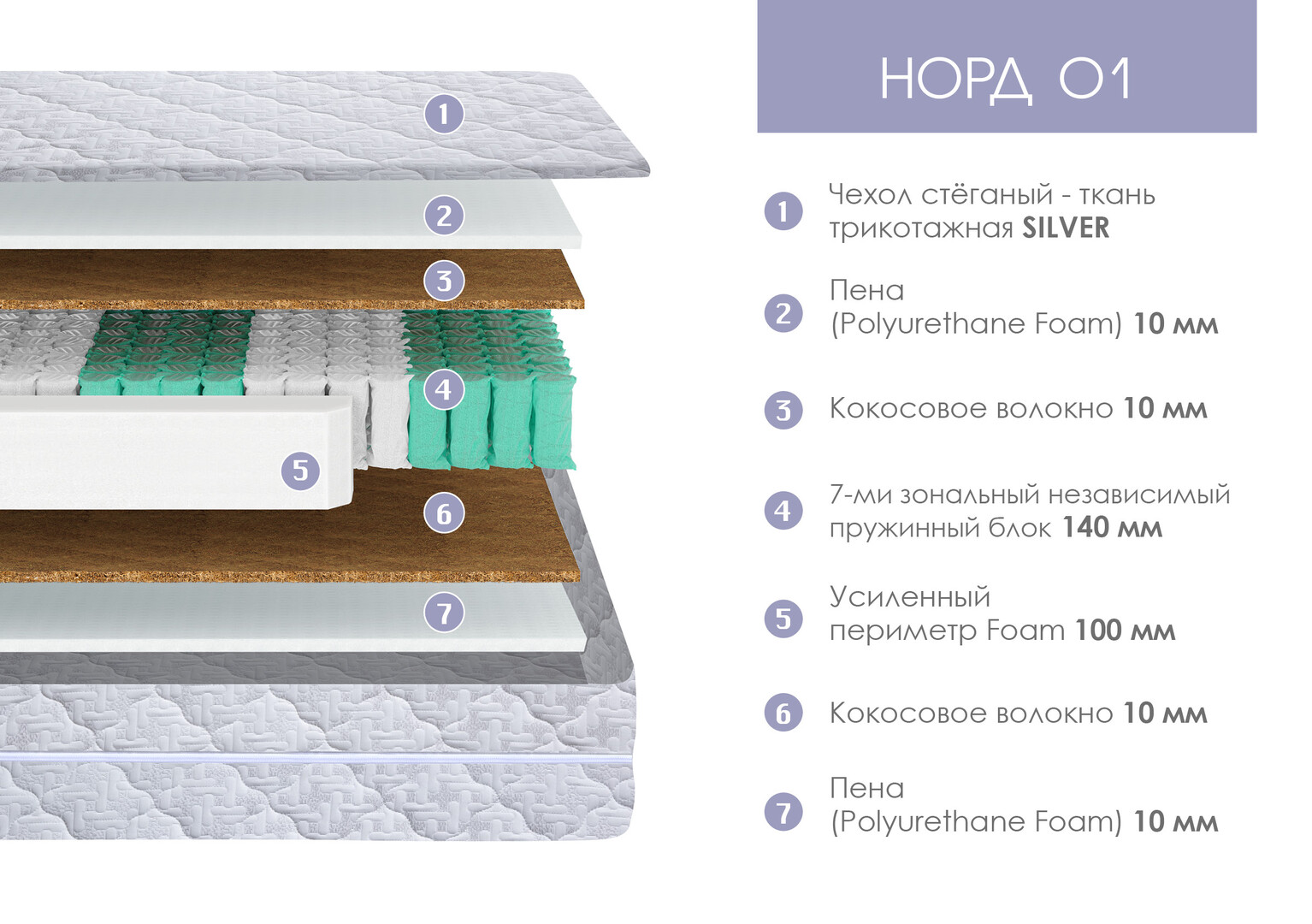 | Материал | Пенополиуретан, кокосовое волокно, термовойлок, пенополиуретан |