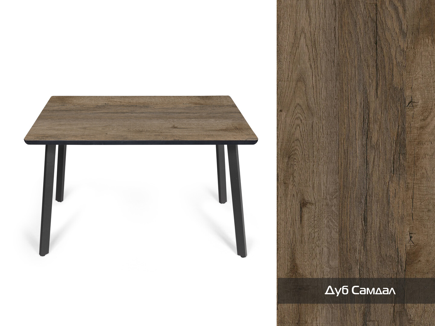• Столешница в оттенке «Дуб Сандал»: тёплый коричнево-золотистый тон с выразительной древесной текстурой придаёт столу благородство и уют. Такой цвет легко сочетается с разными стилистическими решениями — от классики до современного минимализма.