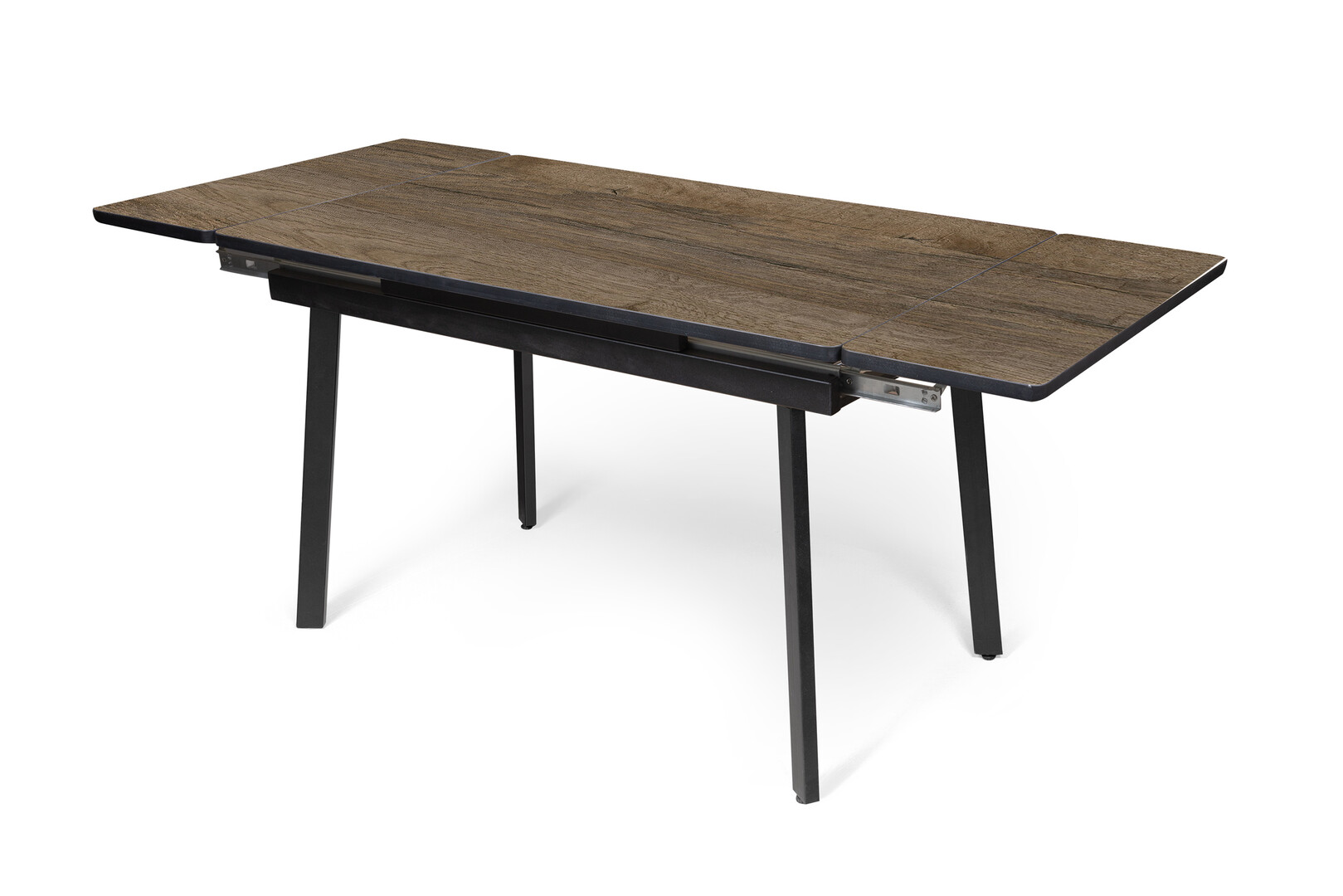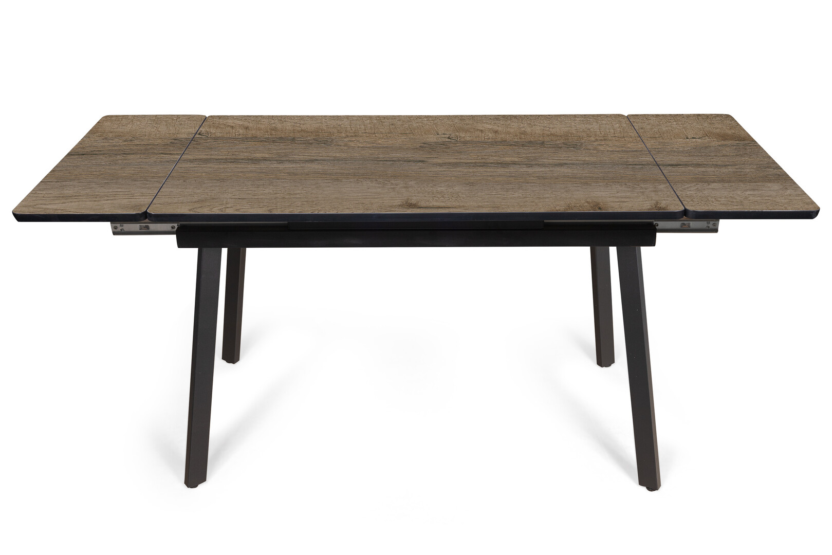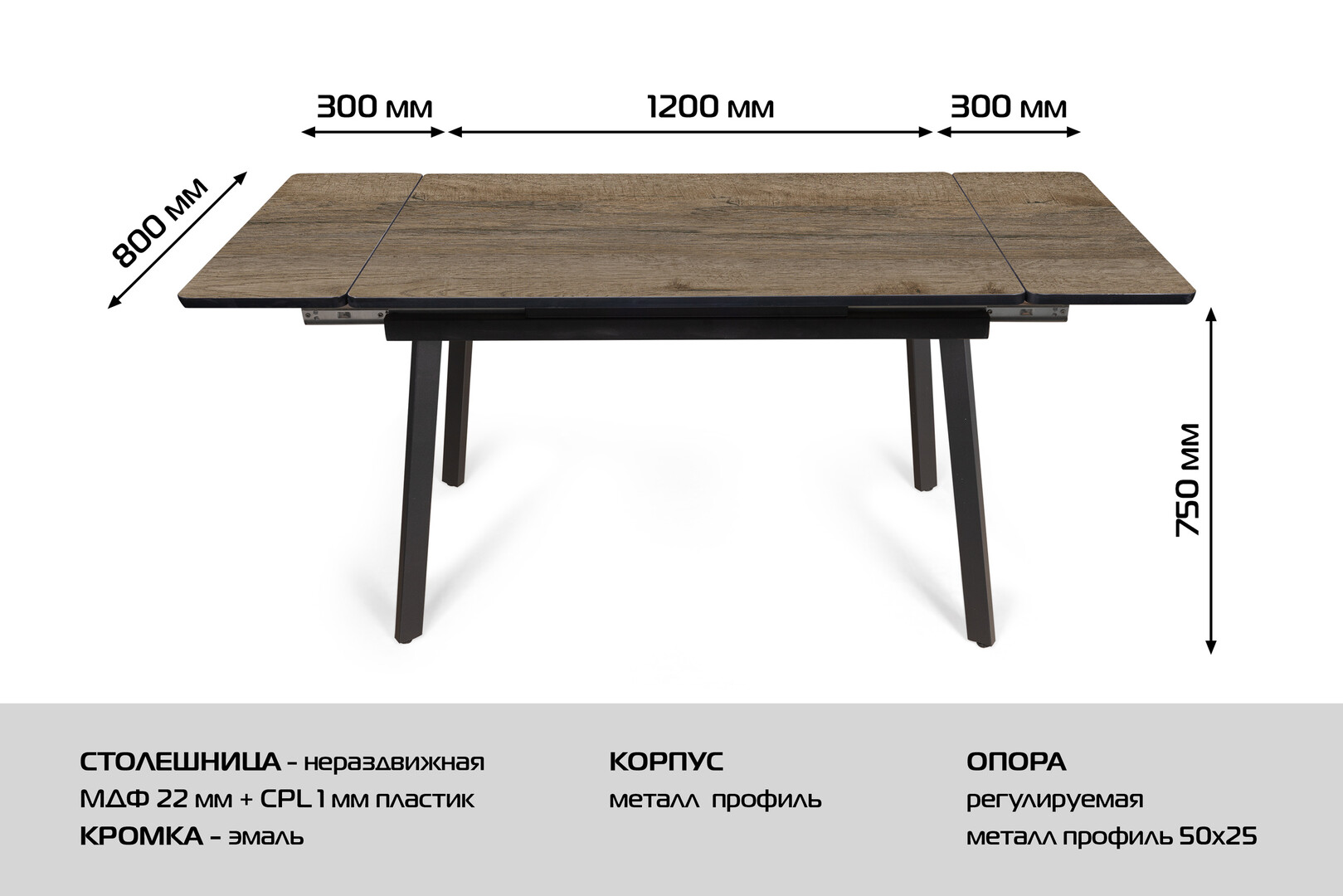 • Ножки: выполнены из прочного металла, окрашены в глубокий чёрный цвет. Оригинальная конструкция с перекрёстным расположением опор придаёт столу современный вид и обеспечивает высокую устойчивость.